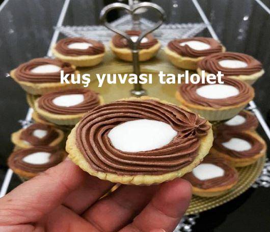 Minik ve şık görünümü ile ikram sofralarınız için ideal bir tarif; kuş yuvası tarloletler. Küçük tartların üzerini muhallebi ve krem şanti ile…